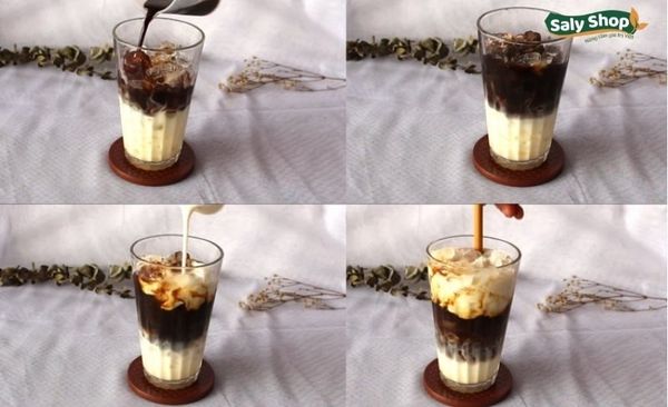 - Rót ra ly, sau đó nhẹ nhàng đổ phần cốt cà phê lên trên để tạo hiệu ứng hai tầng bắt mắt.