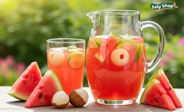 Nếu bạn muốn tạo điểm nhấn mới mẻ cho menu quán, hãy tham khảo ngay công thức trà dưa hấu vải thơm ngon mà SaLy Shop gợi ý dưới đây.