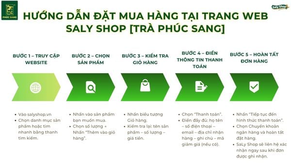 SaLy Shop luôn nỗ lực mang đến quy trình mua hàng thuận tiện, minh bạch và nhanh chóng cho Quý Khách. Nếu cần hỗ trợ thêm trong quá trình đặt hàng, vui lòng liên hệ đội ngũ chăm sóc khách hàng - chúng tôi luôn sẵn sàng đồng hành và phục vụ Quý Khách tận tâm nhất.