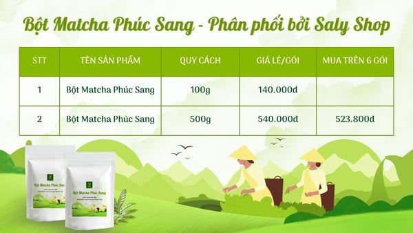 Bảng giá chi tiết cho 2 dòng sản phẩm Matcha Phúc Sang